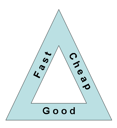 Elige Bueno y Rápido y pospondremos todos nuestros trabajos, cancelaremos todas nuestras reunions y trabajaremos 25-horas al día para obtener su pedido. Pero…., no espere que sea barato.