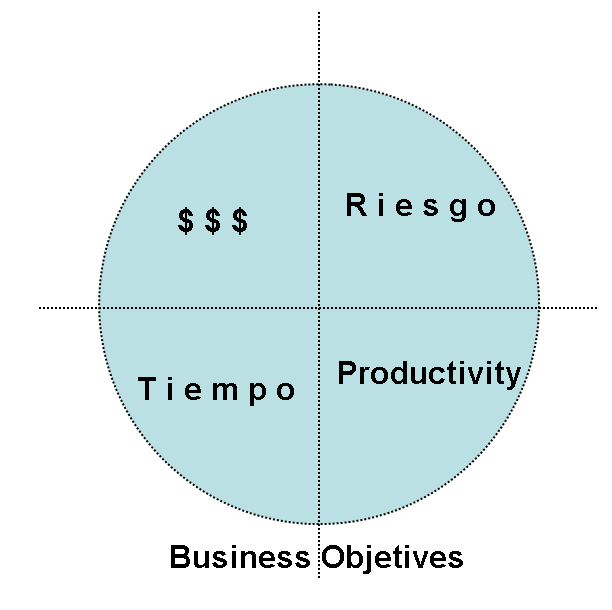 Con una alta productividad (por ejemplo de un equipo de trabajo de alto desempeño) se pueden minimizar riesgos, tiempos, pero típicamente mayor productividad implican mayores costos. (salvo excepciones)
